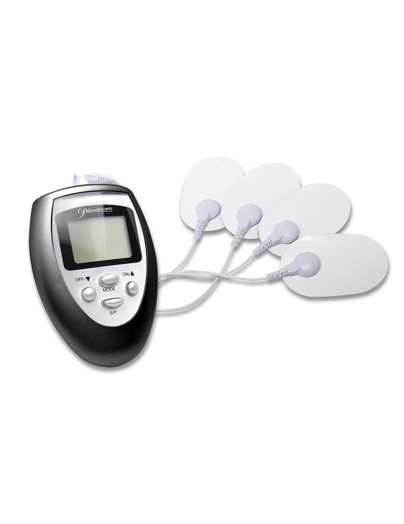 This electric stimulation Shock Therapy kit is perfect for first-timers and those new to e-stimulation. The easy-to-read LCD screen on the digital power control unit clearly displays the function and intensity level, and with 3 pre- programmed pulsation patterns to choose from, this attractive control unit sends electric impulses to whichever body part you place a pad on.