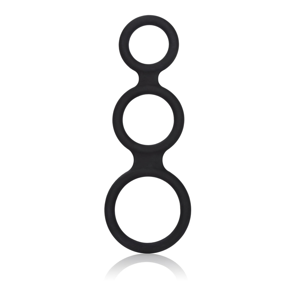 The largest ring slides around the base of your manhood, while the next ring grasps your scrotum and the final encases your shaft. Held securely where it counts, your erection is sure to last longer than ever. When its time to release the pressure, get ready for stronger sensations, and wave magnificent wave of orgasmic pleasure.