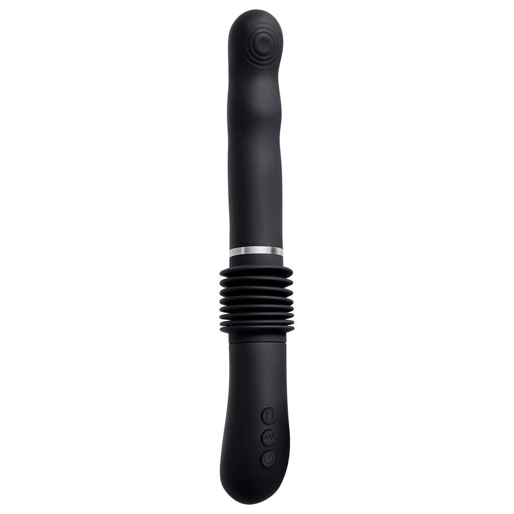 Take a wild ride on a powerful, thrusting machine that rocks your G-spot and leaves you thoroughly satisfied! Feel the earth-moving vibrations deep inside your body as you groove to the circle textures against your G-spot and relish the thrusting shaft that seems to have a mind of its own! Then to transform your experience into a hands-free fantasy, simply click in the removeable suction mount and point it in any direction you desire, using the remote control to get the perfect combination of mind-melting vibes and over 3 inches of thrust! Recharge both the toy and the remote with a secure USB connection to keep your sex machine ready for its next use!